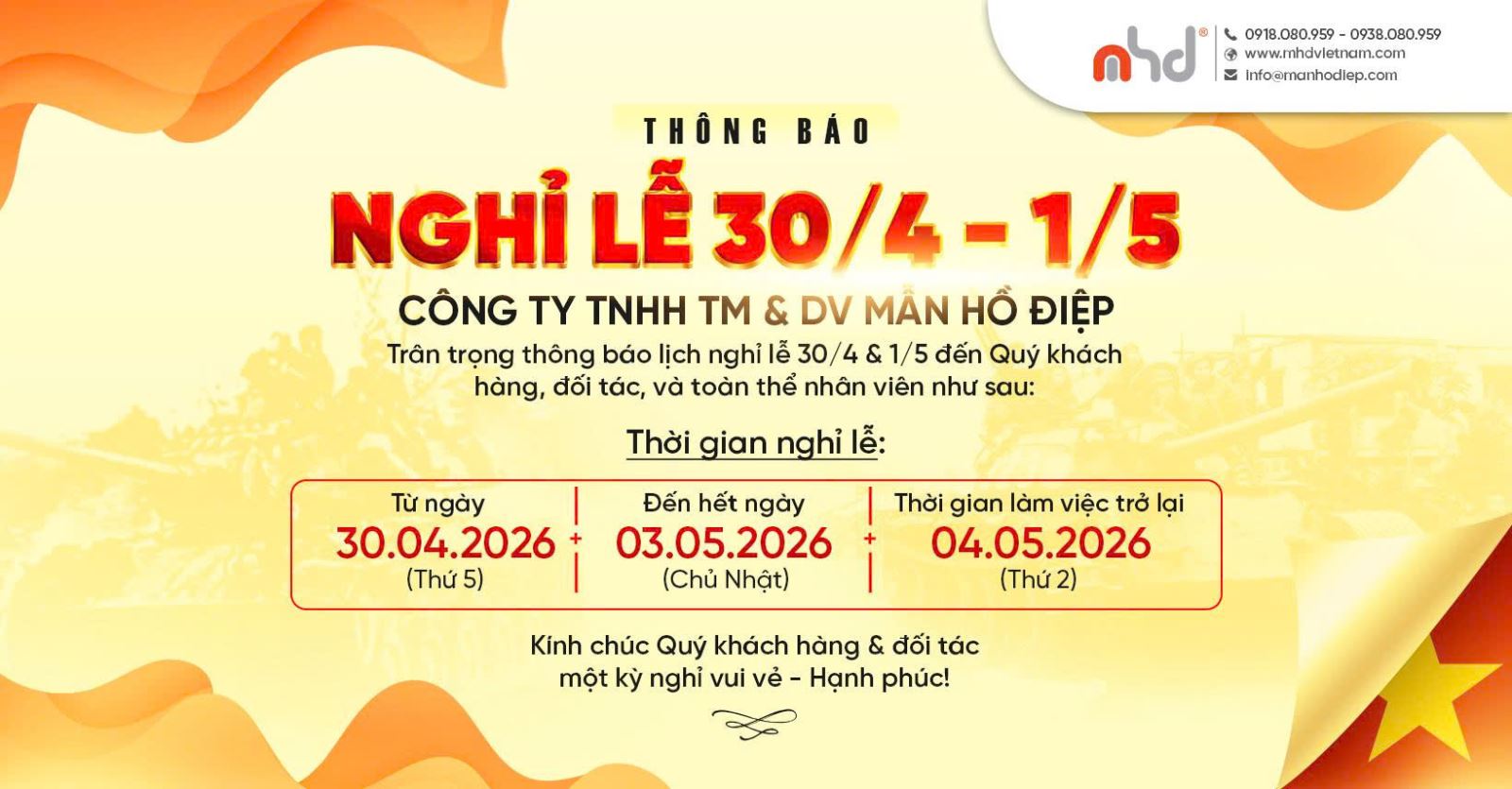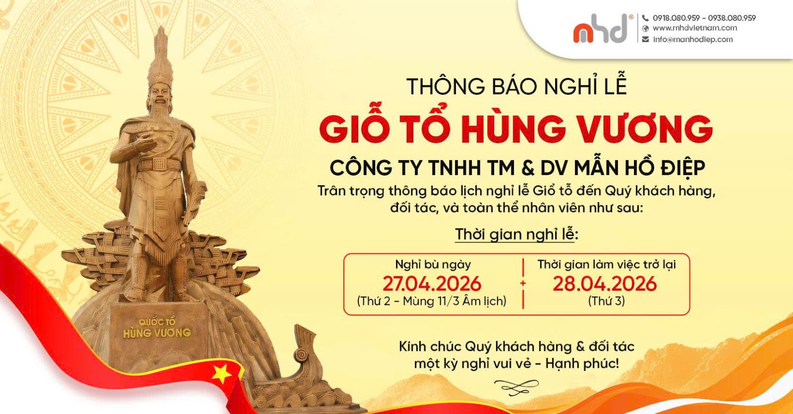 Trong thời gian nghỉ lễ, các hoạt động giao dịch, vận chuyển và hỗ trợ khách hàng sẽ tạm thời gián đoạn. Mọi yêu cầu sẽ được tiếp nhận và xử lý khi công ty hoạt động trở lại. MHD kính chúc Quý Khách hàng, Quý Đối tác cùng toàn thể nhân viên có một kỳ nghỉ lễ thật nhiều sức khỏe, bình an và ý nghĩa. Xin trân trọng cảm ơn sự đồng hành và tin tưởng của Quý vị trong suốt thời gian qua!